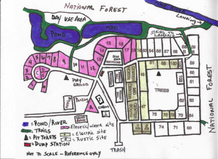 Located in the heart of Northern Michigan outdoor activities! We are centrally located 20 minutes from Cadillac, 45 minutes from Traverse City, and only 30 minutes from Lake Michigan. We are surrounded by hundreds of acres of National Forest, packed with great opportunities for Hunting, Fishing, Morel Mushrooms, Hiking & Biking, and relaxing. We welcome Off Road Vehicles, and you can ride from the campground to Lincoln Hills ORV Trail System.